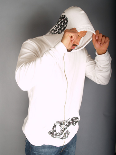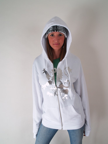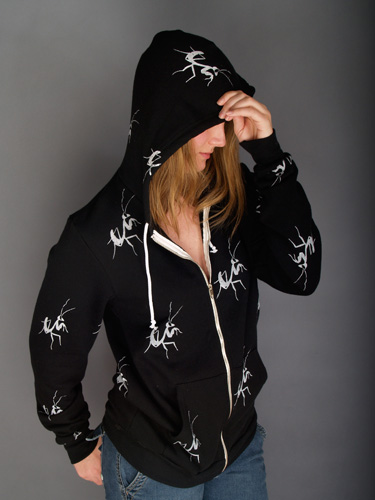 50/50 cotton/poly soft hoodie. full zip front. all-over mantis